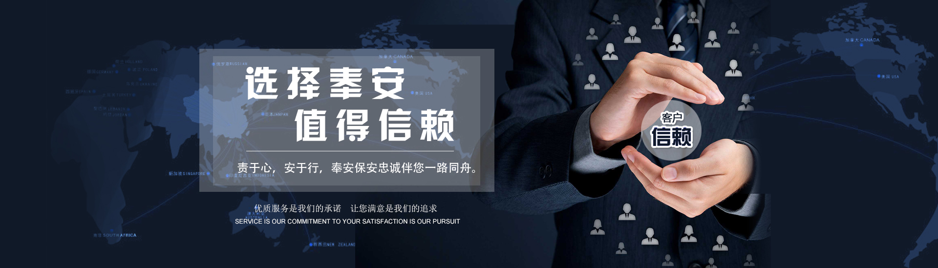 以客為尊 :客戶是公司生存和發(fā)展的決定因素,沈陽奉安保安服務有限公司堅持以客戶為上帝的經(jīng)營理念,全力貫徹“以客為尊、以誠待客”的服務宗旨查看更多 >> -